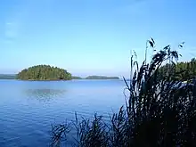 Den sydlige del af Åmänningen set fra Mellanängen, nord for Virsbo. Øen som ses på billedet er Karboholmen