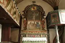 En storslået altertavle viser de sørgende Mariaer og korsfæstelsen af Kristus. Den blev tilføjet det nye alter. Kirken fik højere vinduer og de nuværende stolestader. Det karakteristiske klokketårn blev opført i 1750'erne på foranledning af Erik Olofsson fra Rännberg, bonde og medlem af Riksdagen. Tårnet tilhører en gruppe typiske kirketårne fra 1700-tallets Jämtland med sin løgformede kuppel.