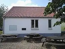 Forsamlingshuset i Vrads, Silkeborg Kommune med en mindeplade om kåringen i 2012.