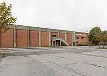 ![]() Aarhus Skøjtehal set fra parkeringspladsen. | |