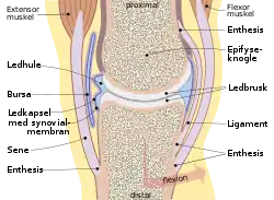 ![]() Illustration af et tværsnit af et typisk ægte led | |
