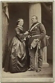 Den danske kong Frederik 7. og sin ægtefælle til venstre hånd, Grevinde Danner