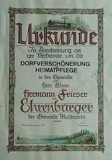 En æresborger har modtaget en hædersbevisning, fordi den hædrede ved arbejde, forskning, udbredelse af viden om stedet, opvækst eller bopæl har gavnet og glædet stedet.