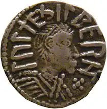 ![]() En af de fire kendte mønter med Æthelberht som der kendes til, British Museum | |