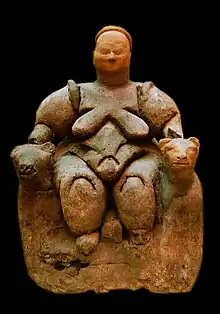 Blandt de berømte fund er en 16,5 centimeter høj statuette af brændt ler, der forestiller en siddende, fed kvinde med armene hvilende på to katteagtige dyr. Hun er lige så korpulent, som det kendes fra den mange tusinde år ældre Venus fra Willendorf-statuette. De to katteagtige dyr har nogle arkæologer tolket som løver,[11] mens andre har fortolket dem som leoparder.[12]