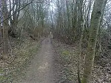 Længere fremme peger skiltet direkte ud i en større sø, men nu er der efterhånden opstået en pænere sti udenom over brakmarken. Så går det igennem Hallingskoven, indtil man når frem til Christiansminde ved Svendborgsund.
