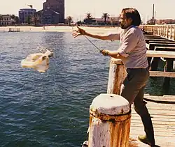 ![]() Øjvind Moestrup indsamler phytoplankton i Adelaide, 1988 | |