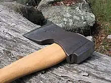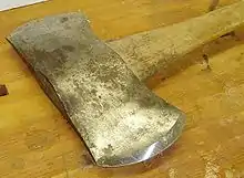 Hovedet er normalt fremstillet ved, at et stykke jern er foldet og svejset sammen i nakkeenden, således at der fremkommer et skafthul. Bladet er før den endelige sammensvejsning belagt med et stykke stål.