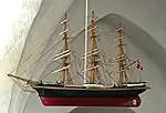 Midt i kirkerummet hænger et kirkeskib, en model af skoleskibet Georg Stage som er skænket til kirken af en beboer i sognet og ophængt i 1964.