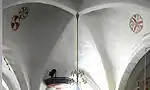 Ud over kalkmalerierne i kapellets hvælving har man også fundet tre cirkulære dekorationer i den oprindelige kirkes østfags hvælving.
