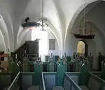 Tårnrummet er inddraget i kirkerummet via en spidsbuet arkadeåbning, således at skibet bliver fire fag langt. Arkadeåbningen til kapellet er i dag lukket af en moderne glasvæg med glasdøre i, for at undgå at opvarme kapellet, af hensyn til de forseglede kalkmalerier. Vægge og hvælv er hvidkalkede. Gulvet er belagt med gule klinker. Under dette fandt man under restaureringen i 1984 tre ældre gulve af forskellige teglmaterialer oven på et stampet lergulv.