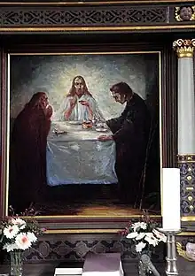 Billedet blev stjålet i marts 2014. Det hang i kirken fra 1904 til 1919, men blev herefter byttet ud med en kopi af Carl Blochs: Jesus i Getsemane Have udført af C. Thornild, Ringkjøbing,[2] men Middag i Emmaus blev atter indsat i 1939.[3]