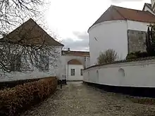 Hovedbygningens 3 fløje udgør sammen med kirken en firefløjet gård, hvor en del går tilbage til middelalderen, dog med store ombygninger undervejs, blandt andet i 1700-årene ved arkitekt Nicolaus Hinrich Rieman. Ladebygningerne brændte i 1749, men blev genopbygget 1750.