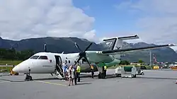 Lufthavnen er tjent af Widerøe, med ruterne til Oslo, Sogndal, Bergen og Sandane.