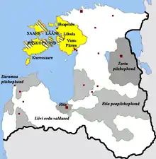 Øsel-Wiek bispedømme ses med gul farve