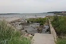 Fra stranden er der udsigt til marineskolen i Mørvig og til den danske side af Flensborg Fjord. I 1980 opførtes den nuværende redningsstation med forsynings- og lagerbygninger. Østersøbadvej (Ostseebadweg) har fået navn efter badestedet[2], den blev anlagt i 1875 som forbindelsesgade fra Aabenraavej[3].