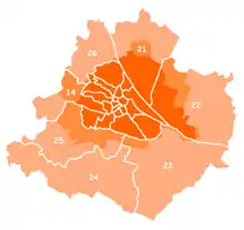 Ved en forordning af 1. juni 1938 blev Wien opdelt i ni (senere ti) kredse. Kredsene blev underopdelt i 436 Ortsgruppen med i alt 2.470 Zellen og 14.254 Blocks. Det nederste niveau i nazi-hierarkiet ar "Block-helfer", som var underlagt "Blockwarten", ansvarlig for 30 til 40 indbyggere.