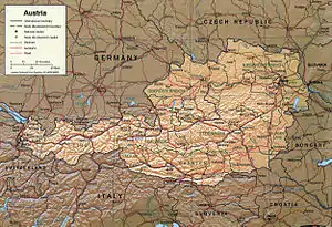 Østrig er et lille bjergland i Centraleuropa, cirka midt imellem Tyskland, Italien og Ungarn. Det har et totalt areal på 83.859 km², cirka dobbelt så stort som Schweiz.