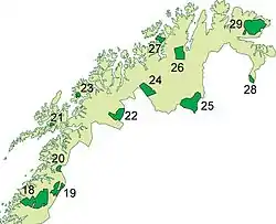 ![]() Kort over nationalparker i Nord-Norge. Denne er nr 28 | |