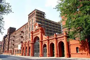 Det mest overdådige palæ i byen er utvivlsomt Izrael Poznańskis palads ved Ogrodowagaden, som samtidig er Europas største fabrikantresidens.[13] Palæet blev bygget lige ved Poznańskis enorme fabrikskompleks som i dag huser Manufaktura. Fabrikanten byggede også palæer til sine sønner (Karol Poznańskis palæ og Maurycy Poznańskis palæ) og sin datter (Jakub Hertz’ palæ).