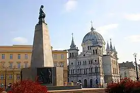Næsten alle synagoger i byen blev brændt ned, og nazisterne oprettede hurtigt en ghetto i byen og befolkede den med 200.000 jøder som boede i Łódź-området (Ghetto Litzmannstadt). Kun 900 overlevede likvideringen af ghettoen i august 1944.[6]
