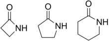 Fra venstre: β-lactam, γ-lactam og δ-lactam.