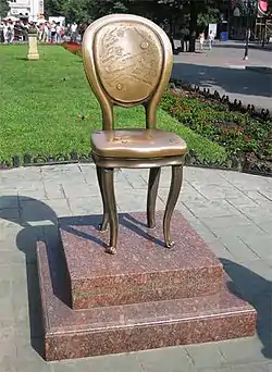 ![]() Del af monumentet De tolv stole i Odessa rejst til minde om romanen og de efterfølgende filmatiseringer | |