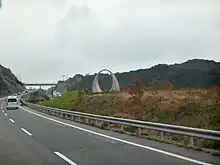 135. østlinge længdegrad markeret med et monument ved motorvejen Kobe-Awaji-Naruto i Japan.