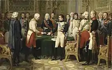 Kongressen i Erfurt den 27. september til 14. oktober, mellem Napoleon 1. af Frankrig og Alexander 1. af Rusland. Napoleon ses her modtage den østrigske ambassadør, baron Vincent.