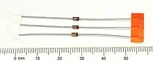 1N4148-dioder i DO-35 glas indkapslet hus med aksiale tilledninger som tillige er elektroder.