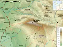 Topografisk kort over Mont Ventoux og omkringliggende områder