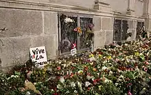 Blomster ved den franske ambassade i København efter Terrorangrebene i Paris november 2015.
