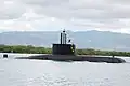 CS Simpson (SS-21) liner op til at fronte for USS Arizona Memorial på vej i havn på Pearl Harbor, Hawaii.