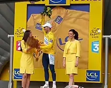 Romain Feillu iklædt den gule førertrøje.