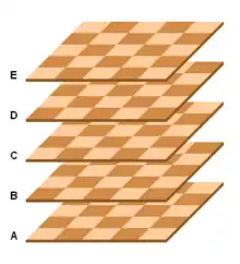 Brætkonfigurationen i Raumschach, et eksempel på tredimensionelt skak
