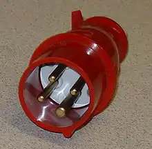 400 V CEE-stik. Denne udgave med fire i stedet for fem ben er sjældent brugt i Danmark, da der ikke er ben nok til både 3 faser, nul og beskyttelsesleder.