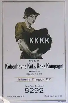 4K står for Københavns Kul & Koks Kompagni, der blev stiftet i København 1909 af købmand og skibsreder Albert Jensen sammen med H.J.O. Kirschner, V.J.A. Müller og M.E.H. Møller. K.K.K.K. satsede på salg af kul og koks til kunder i primært hovedstaden. Snart efter opstarten opkøbte eller etablerede selskabet firmaer i flere danske byer, og i løbet af ganske få år blev det landsdækkende. Virksomheden havde bl.a. kuloplag på Islands Brygge på kajen Islands Brygge 22, hvor Havneparken nu ligger. Dets nu nedrevne bygninger her var tegnet af Valdemar Sander, der i årene 1911-44 udbyggede anlægget.