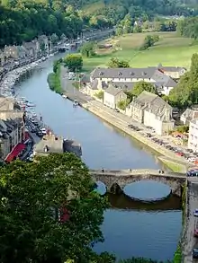 Havnen i startbyen Dinan, ved broen over floden Rance.