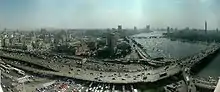 6. oktober-broen med påkørselsramper, Nilen, Kairo og Det Egyptiske Museum.