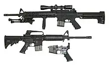 - Jeff Zimba (2014). The Evolution of the Black Rifle: 20 Years of Upgrades, Options, and Accessories. Prepper Press. s. 10. ISBN 978-0-692-31726-6.