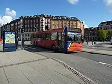 Nyere NT bybus design i Vingårdsgade på Linje 17