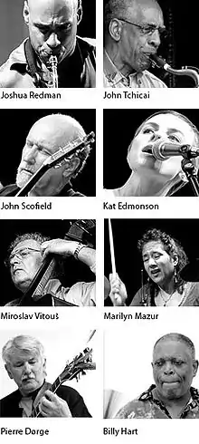 En række af de kunstnere, der har spillet på Aarhus Jazz Festival; Joshua Redman, John Tchicai, John Scofield, Miroslav Vitous, Marilyn Mazur, Pierre Dørge og Billy Hart.