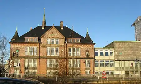 - Den røde bygning, fra 1906, tegnet af Hack Kampmann