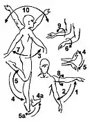Betegnelser: 1. Abduktion 2. Adduktion 3. Anteversion 4. Extension 5. Flexion 6. Pronation 7. Retroversion 8. Rotation 9. Supination 10. Cirkumduktion |