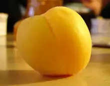 Frugterne er saftige, orange-gule stenfrugter, omkring 3-4 cm i diameter, der ligner små ferskener. Frugten indeholder op til 85% vand. Det tynde skind er fløjlsagtigt – nærmest håret – som ferskenens. Smagen er sød og frisk. Kernen er en flad sten, der indeholder et frø. Frøkernene indeholder helt op til 50% olie, der gør, at kernerne kan bruges som alternativ til mandler i produktion af marcipan.