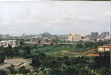 Landets nationalmoské er beliggende i byen på Independence Avenue.