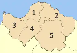 Den regionale enhed Achaea er opdelt i 5 kommuner. Disse er (numre som på kortet i infoboksen):[3]