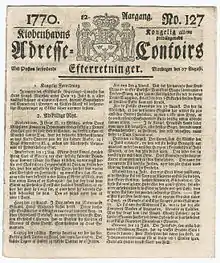 Adresseavisen eller som den fuldstændigere titel lyder Kjøbenhavns Adressecomptoirs Efterretninger -- er den ældste, danske egentlige annonce-avis.