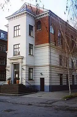 Bygningen, i røde mursten, 3 etager og i historicistisk stil, er opført 1895-96 for ca. 75.000 kr (1900-kroner) ved arkitekt D.W. Leerbeck og indeholder bl.a. en stor og en mindre sal, nogle lejligheder, tidligere også skole og forlag. Kirkesalen er i 2000'erne renoveret med nyt interiør og caféborde.