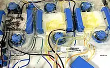 Ved nogle maskiner tilsluttes donor med begge arme, mens andre maskiner kun kræver forbindelse med den ene arm. Maskinen opsamler for eksempel blodpladerne og sender resten, det vil sige blodlegemer og plasma, tilbage til donor. Ved stik i begge arme foregår tapning og tilbageførsel samtidigt. Ved stik i én arm, skiftes der mellem tapning og tilbageførsel. Mængden af tappet blod og tilbageførsel overvåges hele tiden maskinelt, så der er en balance mellem tappet og tilbageført blod. Skulle det ske, at der bliver tappet for meget, nedsættes hastigheden automatisk, eller maskinen stopper helt.